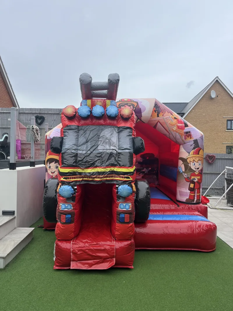 π Book your Fire Engine Bouncy Castle with Slide today and bring the fun to your event!
